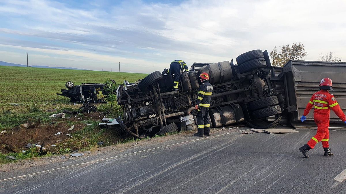 O șoferiță a provocat un accident, vineri, pe DN 79, între Arad şi Zimand Cuz, după ce a intrat într-o depăşire periculoasă. Ea s-a ciocnit cu un TIR, care s-a răsturnat pe şosea şi a lovit o maşină care circula regulamentar. Şoferul autoturism lovit de TIR a decedat, iar alte trei persoane au fost rănite, informează News.ro.