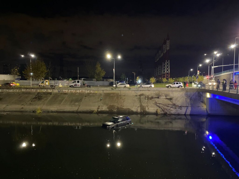 Un șofer din Capitală a căzut cu mașina în Dâmbovița în zona Pasajului Nicolae Grigorescu, după ce a pierdut controlul volanului.