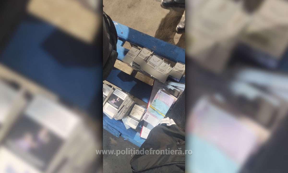În baza profilului de risc, s-a procedat la efectuarea unui control amănunţit asupra mijlocului de transport şi persoanei, ocazie cu care echipa comună de control, formată din poliţişti de frontieră şi lucrători vamali, a descoperit asupra bărbatului suma de 80.000 de euro, nedeclarată și ascunsă, în vederea sustragerii de la controlul vamal, în șosete, precum și cantitatea de 70 de pachete de țigări cu timbre de acciză R. Moldova, ascunse pe corp și în șosete.