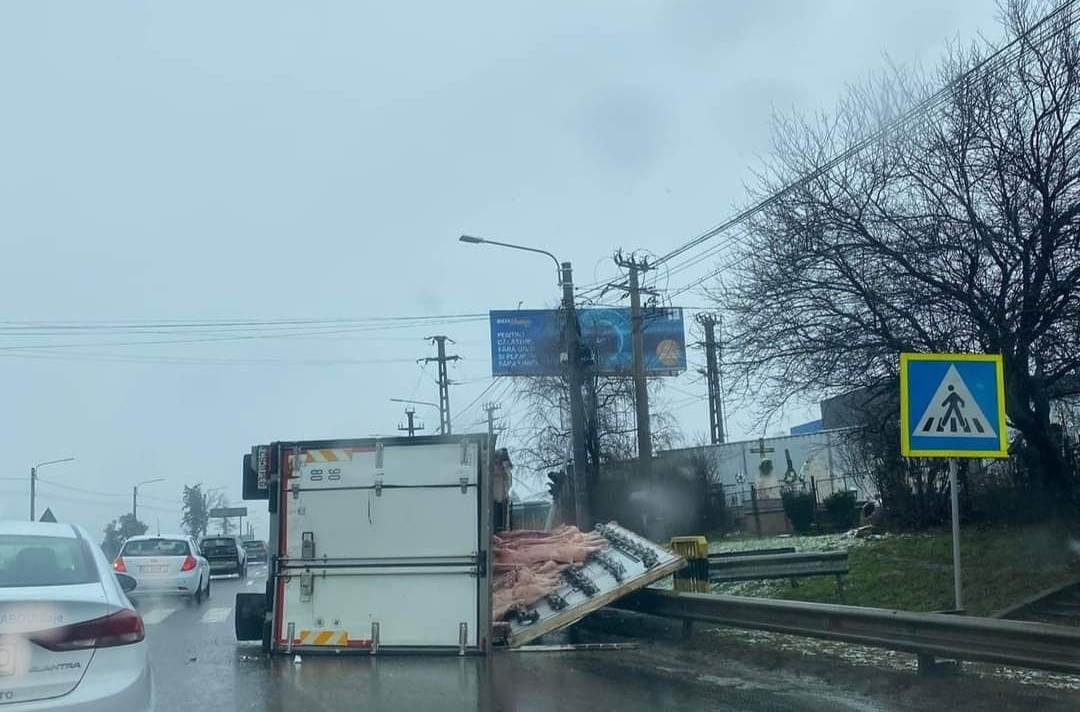 Accidentul a avut loc în acestă dimineaţă, la intersecţia Centuri de Nord cu Calea Bucureşti, la ieşire din Craiova. Remorca unui camion condus de un bărbat din Caraş Severin s-a despins şi s-a răsturnat în intersecţie. Camioul era încărcat cu carcase de porc şi circula către Slatina. Poliţiştii doljeni au precizat accidentul s-a soldat numai cu pagube materiale. Şoferul a fost testat cu aparatul etilotest, rezultatul fiind negativ.