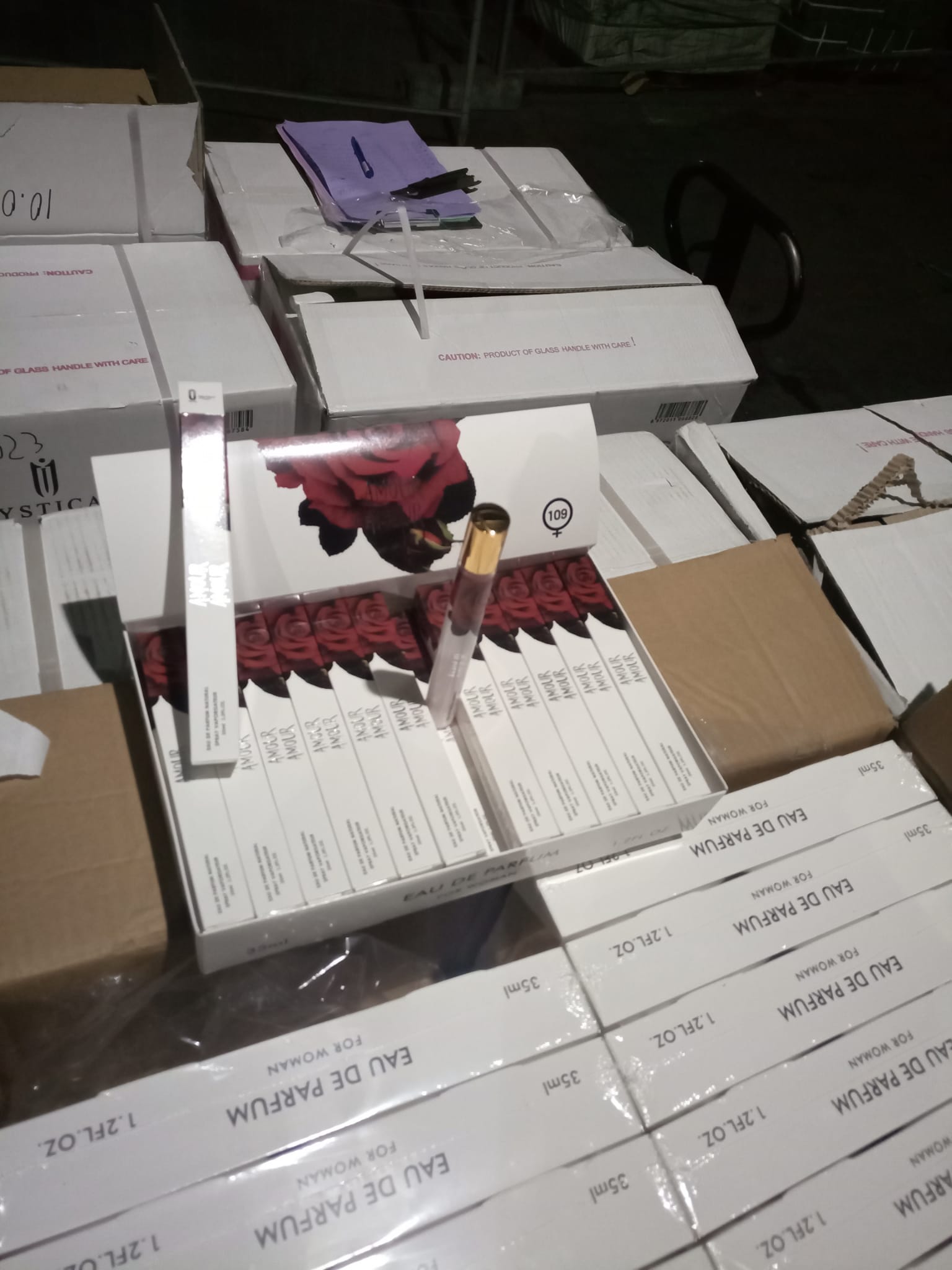 Inspectorii vamali din cadrul Biroului Vamal de Frontieră Constanţa în urma unui control controlului asupra mărfurilor aflate într-un container sosit din China, pentru o societate comercială cu sediul în București, au reţinut 25.920 buc. flacoane apă de parfum(35 ml.)susceptibile a aduce atingere drepturilor de proprietate intelectuală asupra mărcilor „Chanel“, „Giorgio Armani”, „Cacharel“, „Carolina Herrera“, „Lacoste“, „Tom Ford“, „Pure Black“ și „Antonio Banderas”.