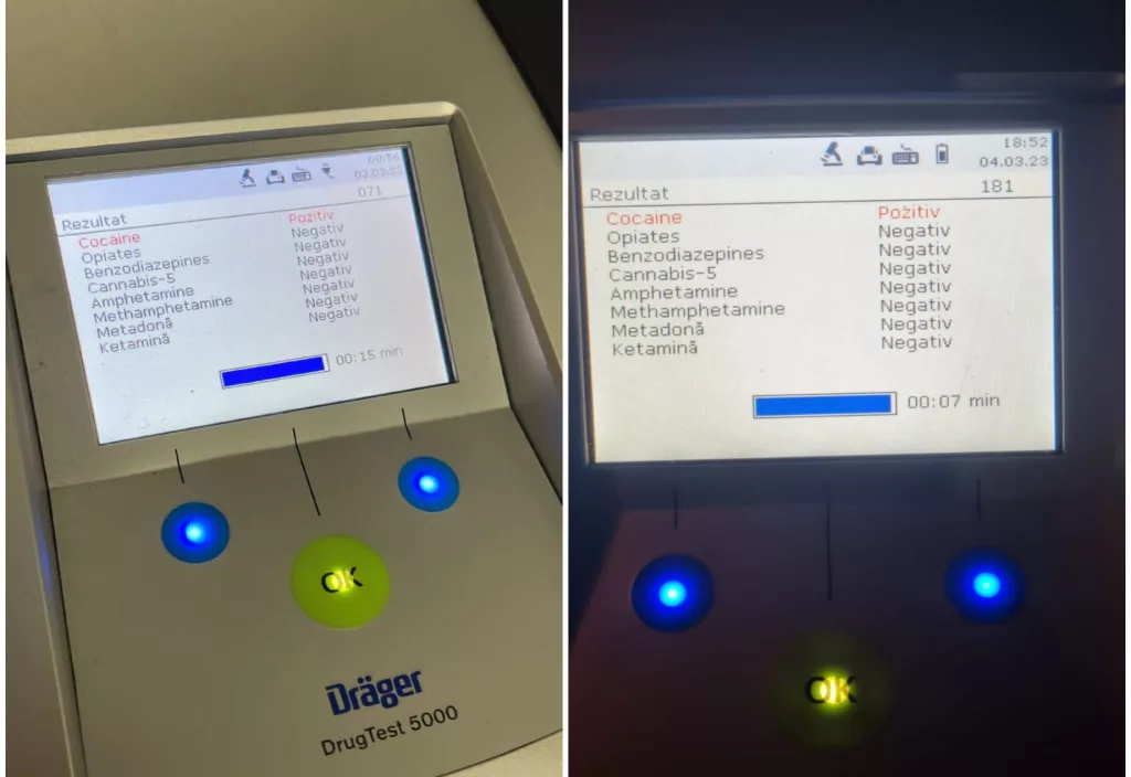 Primul, un bărbat de 35 de ani, a fost oprit în noaptea de 3 martie, pe strada Căpșunilor din Craiova. Pentru că avea un comportament suspect, şoferul a fost testat cu aparatul Drugtest. Rezultatul a fost pozitiv la cocaină, spun poliţiştii. De asemenea, a fost testat și cu aparatul etilotest, rezultatul fiind 0,09 mg/l alcool pur în aerul expirat.