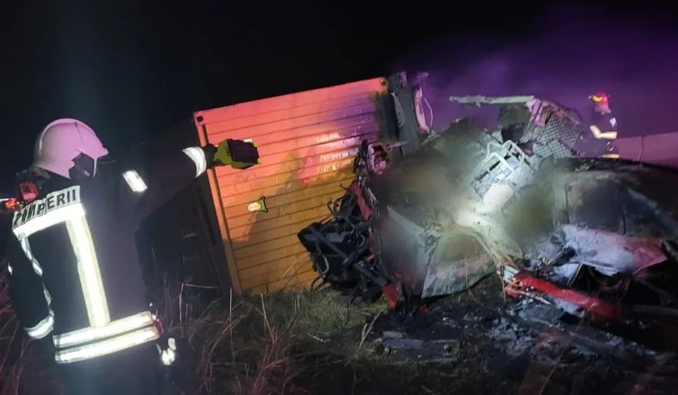 „La faţa locului s-au deplasat pompierii din cadrul Detaşamentului Giurgiu, cu o autospecială de stingere, o cisternă, o descarcerare, o ambulanţă SMURD şi două SAJ. Când au ajuns echipajele, tirul era răsturnat pe o parte, capul tractor ardea generalizat, iar conducătorul auto surprins în interior nu a mai putut fi salvat”, informează ISU Giurgiu.