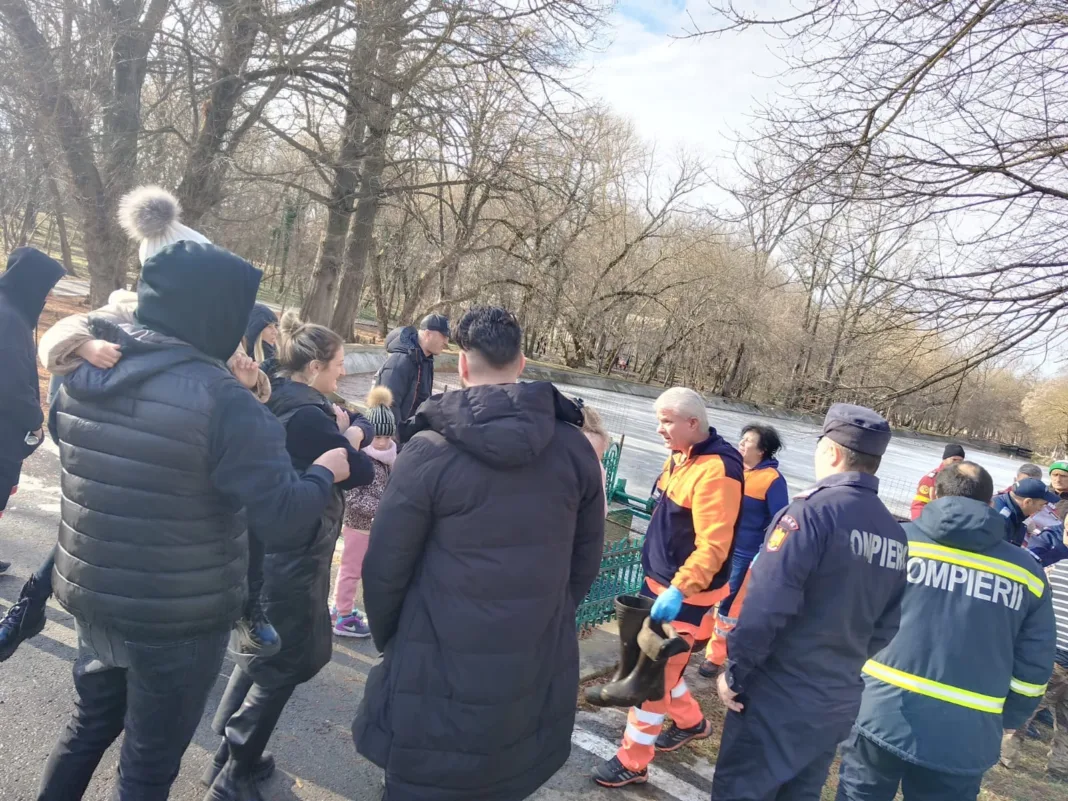 „Un bărbat de 44 ani se bucură în continuare zile frumoase alături de familia lui datorită unui pompier. Bărbatul, intenționa să pescuiască, însă s-a dezechilibrat și a căzut în apă. Soarta l-a adus în apropiere de locul incidentului pe Marian Rădoacă un pompier care, în timpul său liber, îşi plimba cei doi copii alături de soție pe aleile parcului.