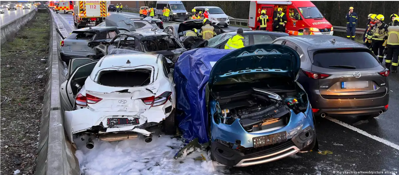 Un purtător de cuvânt al poliției a declarat că mai multe vehicule au fost implicate în accidentul inițial, potrivit www.dw.com. La scurt timp după aceea, alte mașini au început să se lovească în vehiculele oprite.