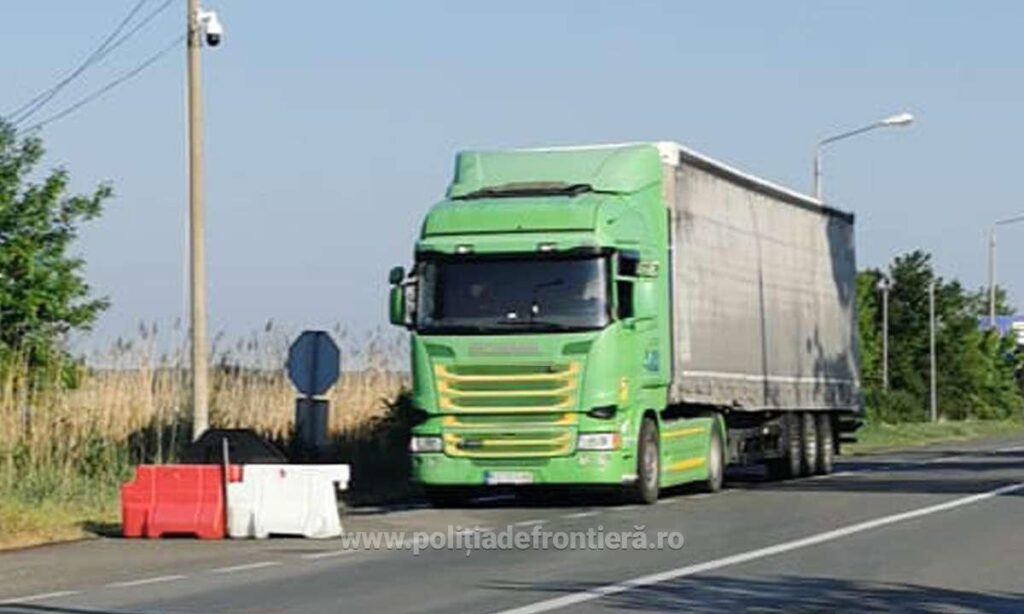Un conducător auto, al unui ansamblu rutier aflat în staționare pentru a ieși din România, a sesizat că din semiremorcă se aud zgomote și voci.