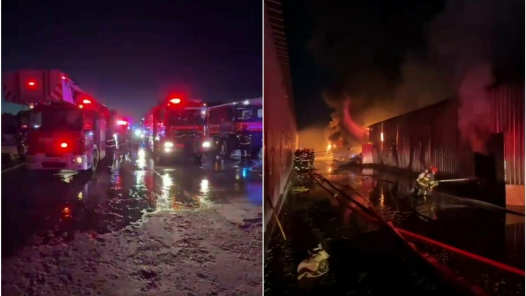 Un incendiu a izbucnit, marţi seară, la un spaţiu de depozitare din complexul „Dragonul Roşu” din Bucureşti, fiind degajări mari de fum. Focul a cuprins circa 2.000 de metri pătraţi, cu risc de propagare la alte spaţii de depozitare.