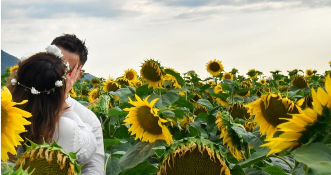 Doi tineri, amândoi în vârstă de 35 de ani, din localitatea Anagni, în provincia Frosinone, Italia, după slujba religioasă, înainte de petrecerea cu invitaţii, şi-au dorit să imortalizeze fericitul eveniment într-un lan de floarea-soarelui.