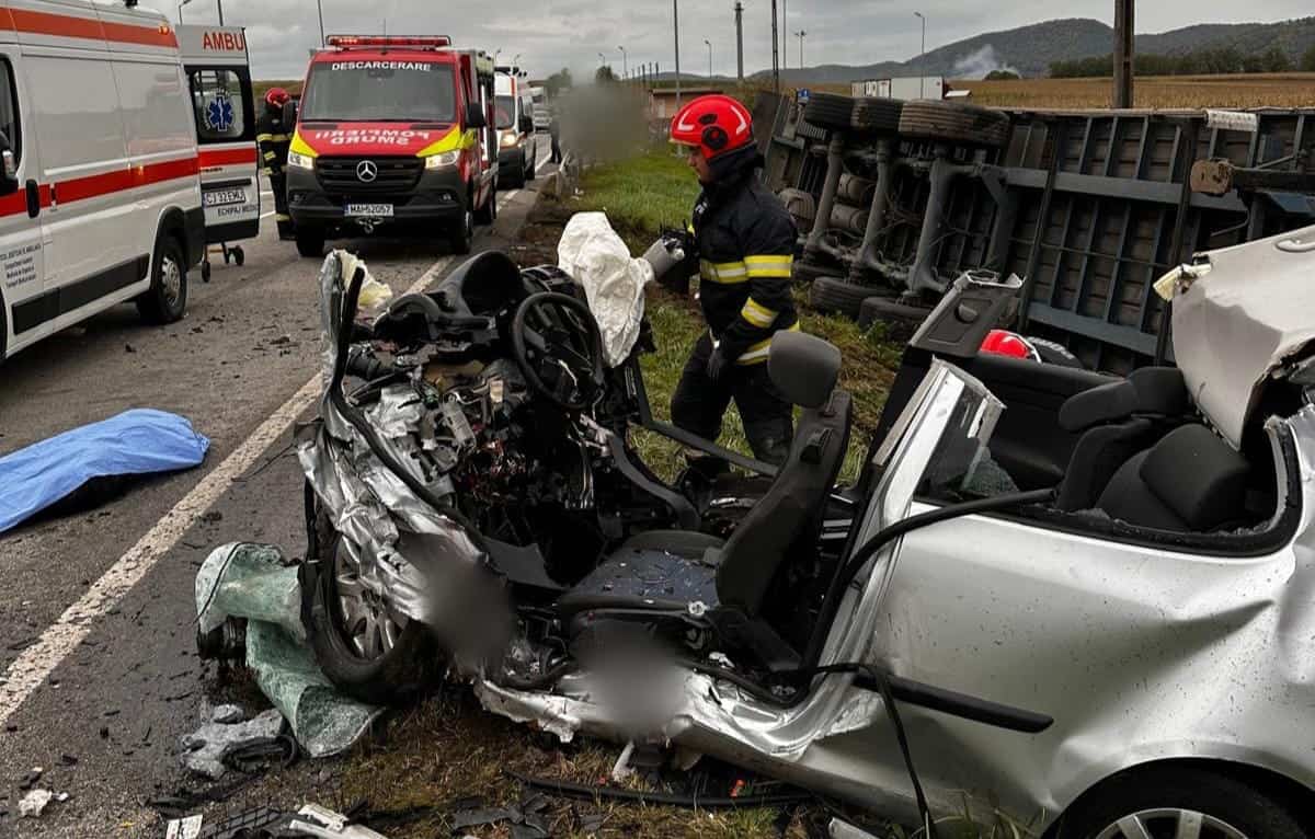 Un tânăr și o tânără și-au pierdut viața pe loc după ce mașina cu care circulau s-a ciocnit cu un camion care transporta chereste. Accidentul s-a petrecut duminică, pe DN 1C, pe raza localităţii maramureșene Câţcău.