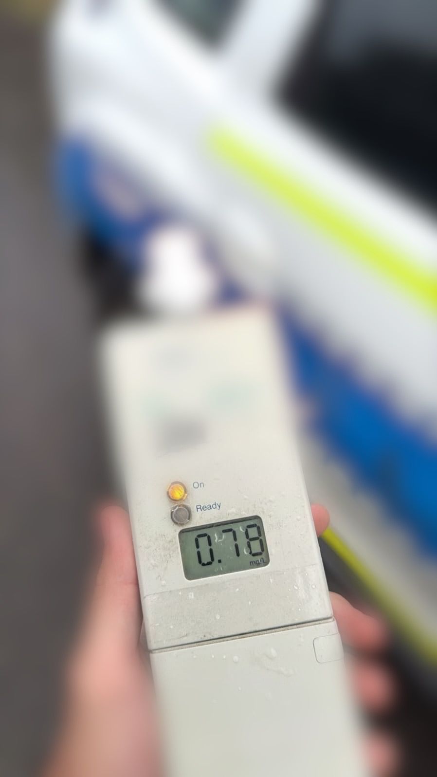 Acesta a fost testat cu aparatele din dotare, rezultând o concentrație de 0,78 mg/l alcool pur în aerul expirat și trei rezultate pozitive pentru posibila prezență a substanțelor psihoactive.