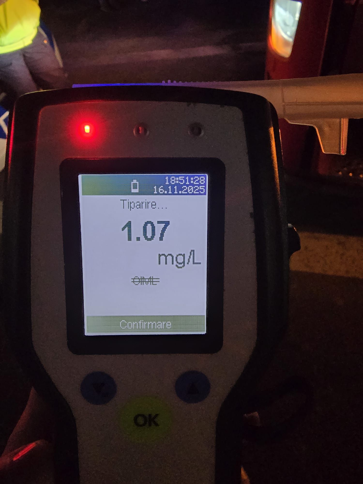 Șoferul, un bărbat de 58 de ani din județul Constanța, a fost oprit și testat cu aparatul etilotest, rezultând 1,07 mg/l alcool pur în aerul expirat.