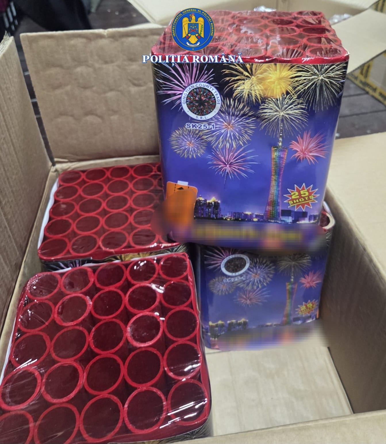 Cercetările au relevat că aceasta deținea în total 110 kg de articole pirotehnice din categoriile F1, P1, T1 și F2, care erau oferite spre vânzare clienților, inclusiv minorilor. Toate articolele au fost ridicate, iar polițiștii au întocmit dosar penal pentru: