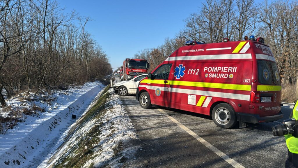 (VIDEO) UPDATE – Dolj: Accident pe DN 79: trei victime, una blocată în autoturism