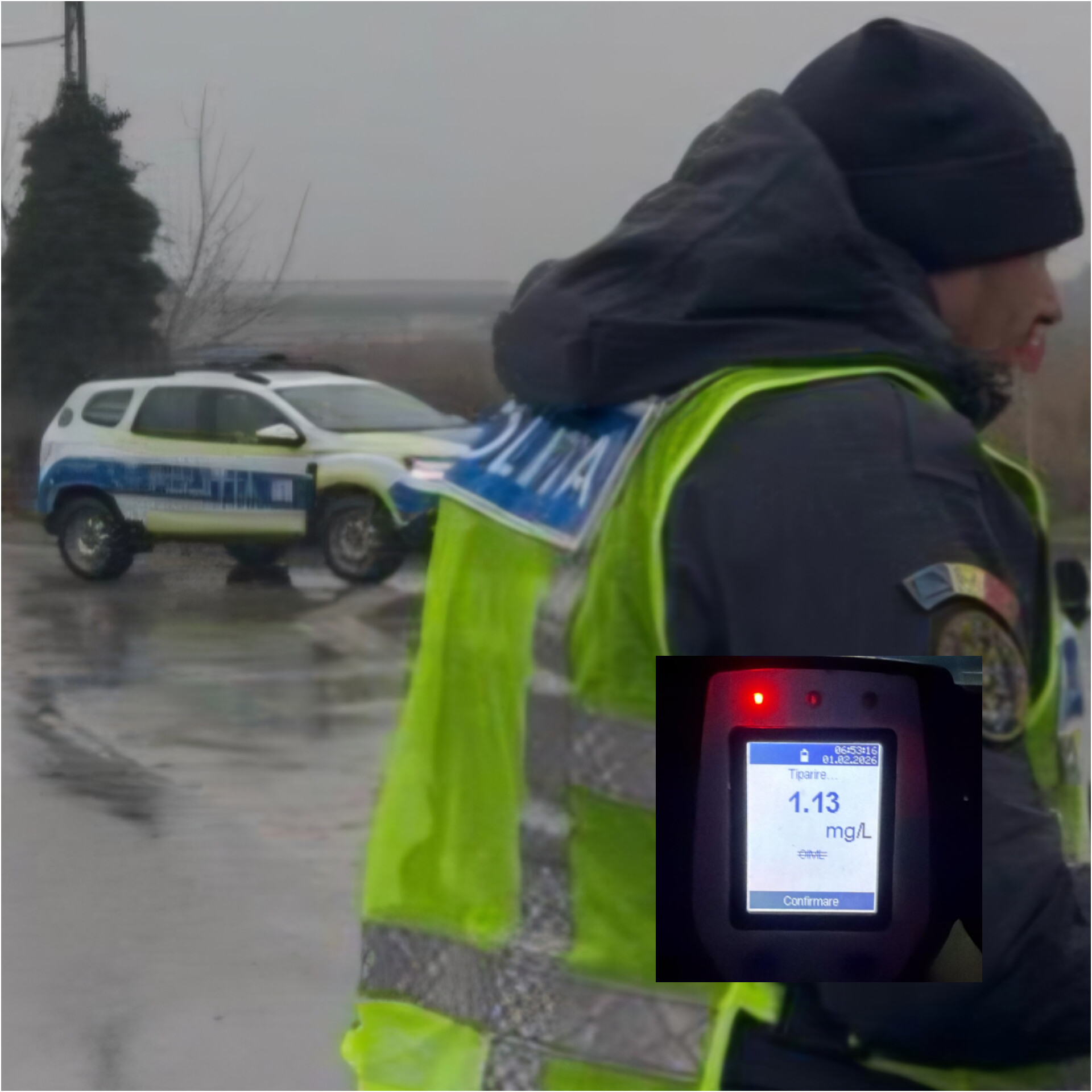 Conducătorul auto a fost testat cu aparatul etilotest, rezultatul indicând o concentrație de 1,13 mg/l alcool pur în aerul expirat.