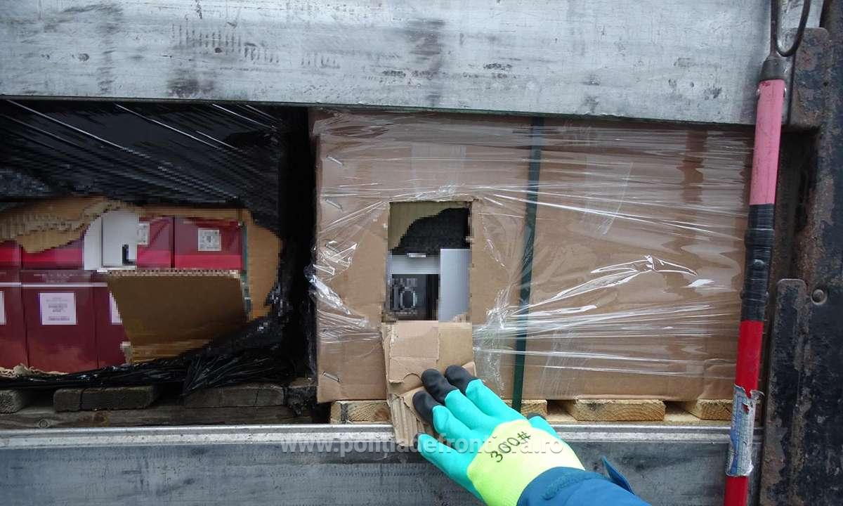 Polițiștii de frontieră din Calafat au depistat un ansamblu rutier înmatriculat în Bulgaria, care transporta 32.220 de flacoane de parfum purtând însemnele unor mărci cunoscute, suspectate a fi contrafăcute.