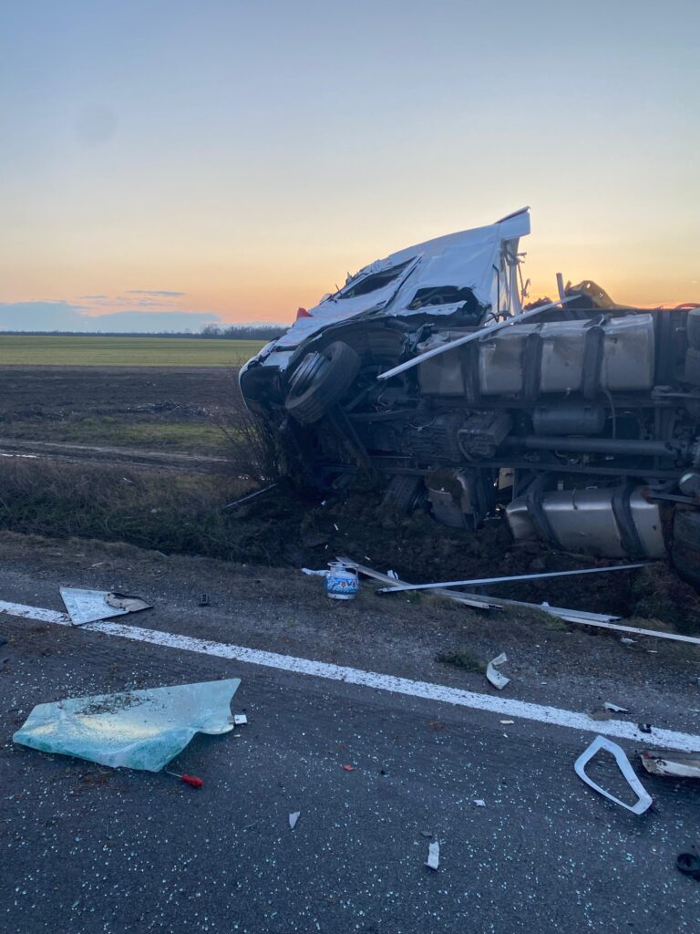 Potrivit polițiștilor din cadrul Serviciul Rutier Mehedinți, un bărbat de 39 de ani, cetățean bulgar, care conducea un ansamblu de vehicule, ar fi pătruns pe sensul opus de mers, unde a intrat în coliziune frontală cu un alt autotren.
