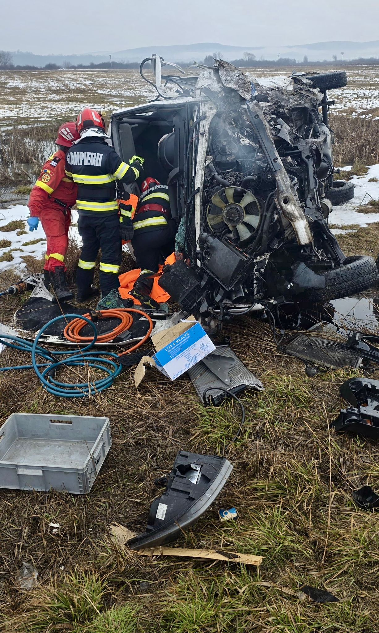 Conducătorul autoutilitarei și un pasager, 28 de ani, din autoturism, au rămas încarcerați și a fost necesară intervenția echipajului de descarcerare pentru extragerea lor. Aceștia au suferit multiple traumatisme și au fost transportați la spital.