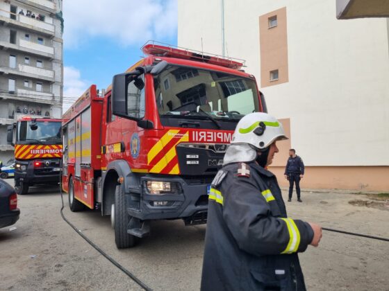 Momente de panică într-un imobil de locuințe de pe strada Dâmbovița, unde o explozie urmată de incendiu s-a produs într-un apartament situat la parterul blocului.