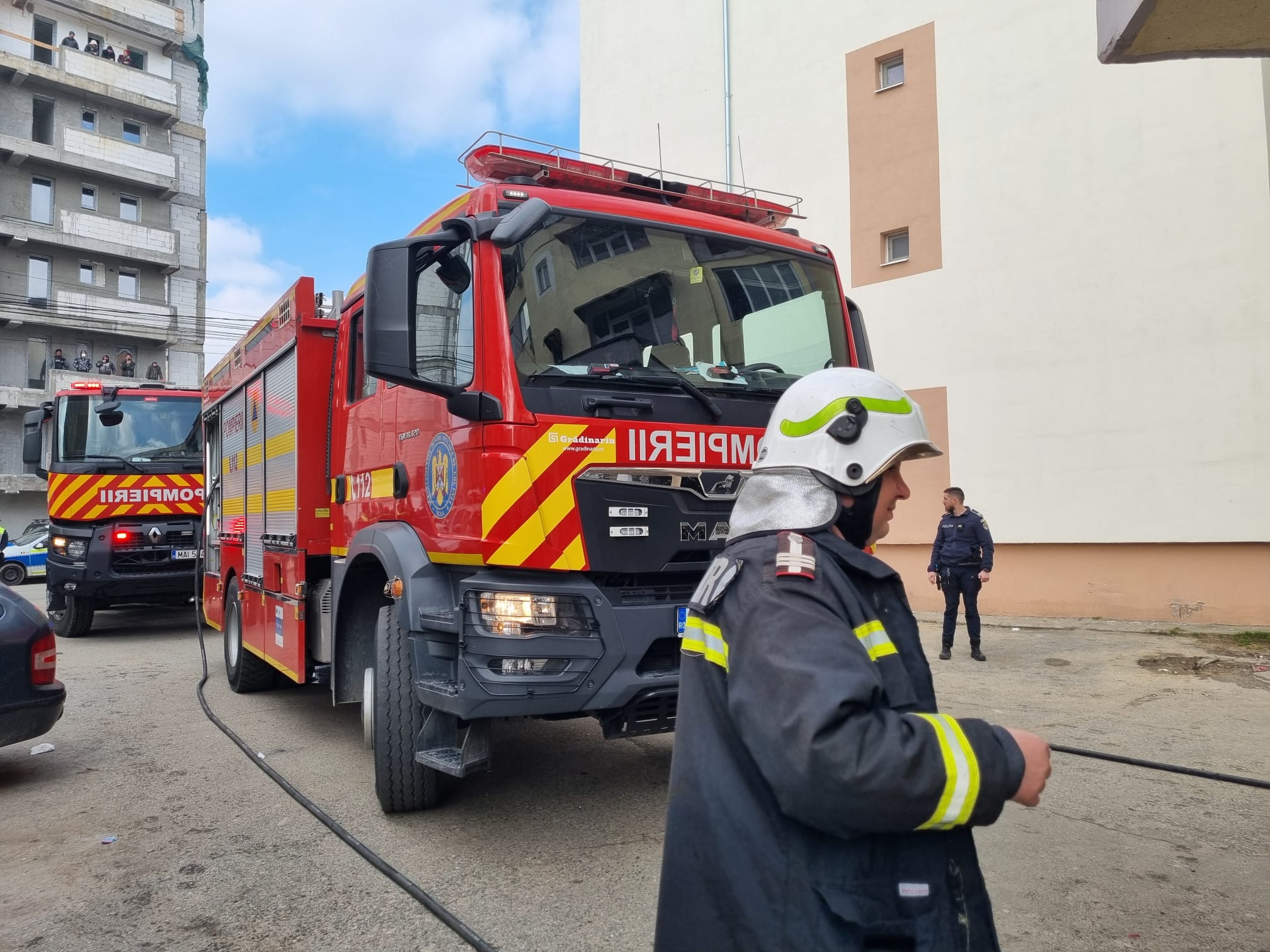 Pompierii acționează simultan pentru:
