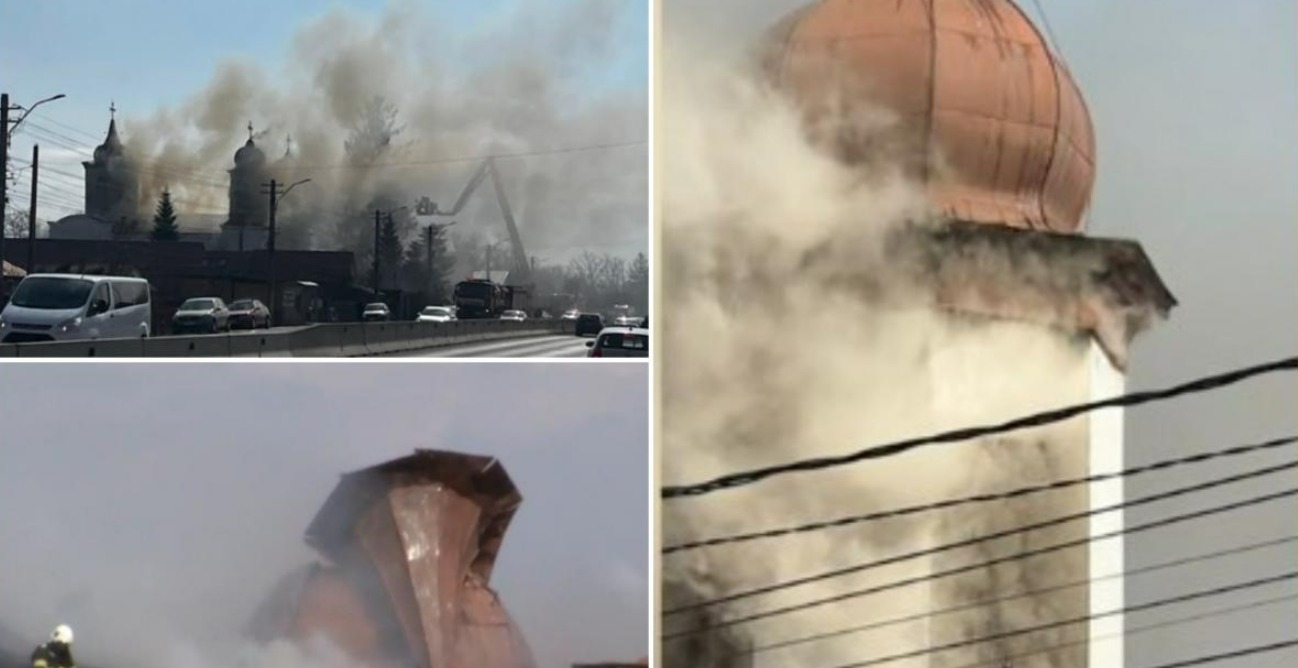 Incendiu puternic la o biserică în timpul slujbei! Turla principală s-a prăbușit