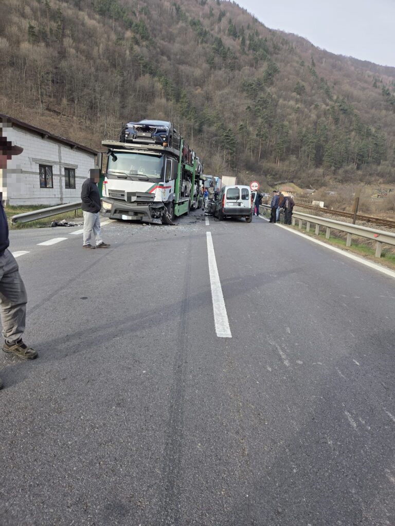 Circulația rutieră pe DN 7, în zona localității Câineni, este afectată după producerea unui accident rutier în care au fost implicate un autoturism și un vehicul de mare tonaj.