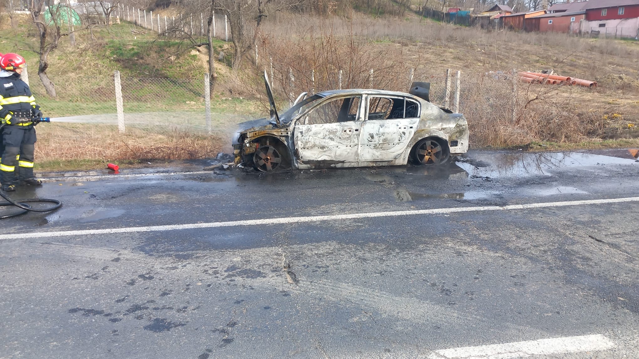 La sosirea echipajelor, autoturismul ardea generalizat. Incendiul a fost: