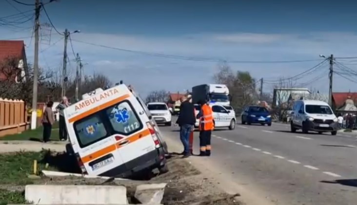 Doi membri ai unui echipaj de ambulanță, pacientul pe care-l transportau și fiica lui de 16 ani au ajuns la spital, după ce o ambulanța aflată în misiune s-a ciocnit cu un autoturism și a ajuns într-un șanț. Accidentul s-a petrecut luni dimineață, pe DN 2, în localitatea băcăuană Sascut.