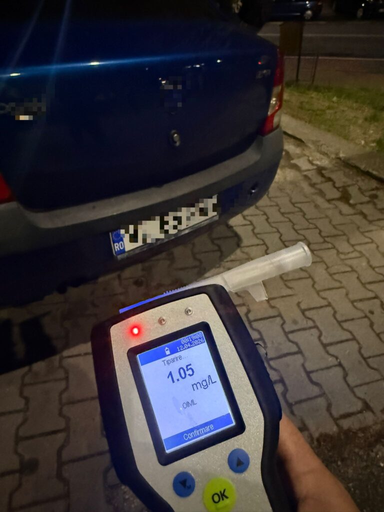 La volan a fost identificat un bărbat de 56 de ani, din Vlădești. Testarea cu aparatul etilotest a indicat o alcoolemie de 1,05 mg/l alcool pur în aerul expirat.