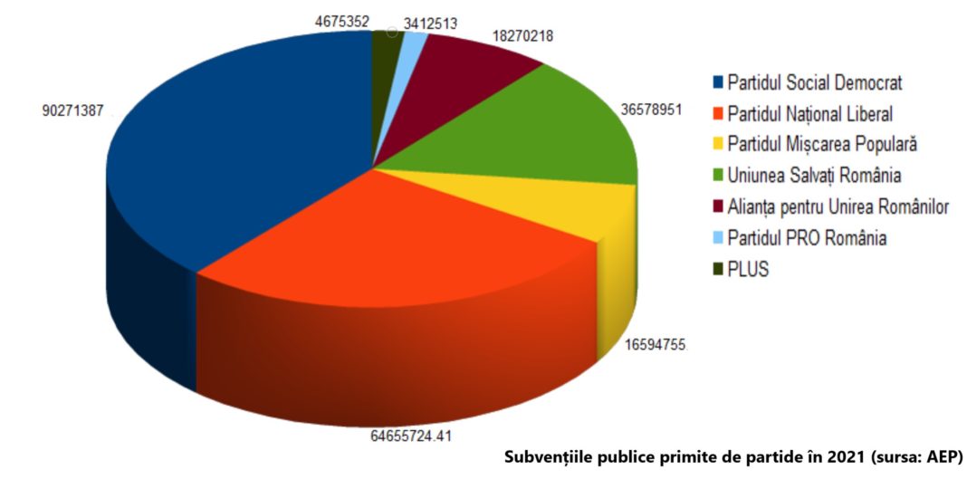 Partidele au primit în 2021 subvenții de aproape 235 de milioane de lei, adică aproape 47 de milioane de euro. Cei mai mulți bani i-au primit PSD și PNL, care, în primele nouă luni ale lui 2021, din fondurile cheltuite peste jumătate au mers pentru propagandă, notează Hotnews.