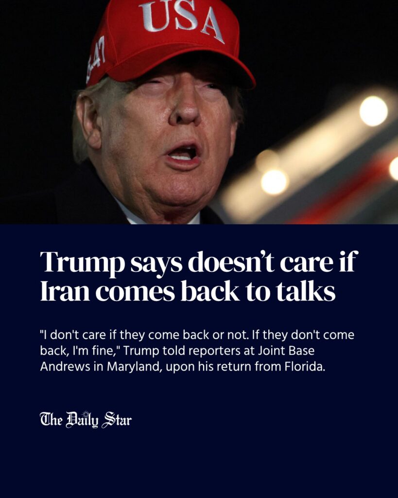 Președintele american Donald Trump a declarat că nu este interesat dacă Iranul revine la masa negocierilor, susținând că discuțiile au eșuat deoarece Teheranul a refuzat să renunțe la ambițiile sale nucleare.